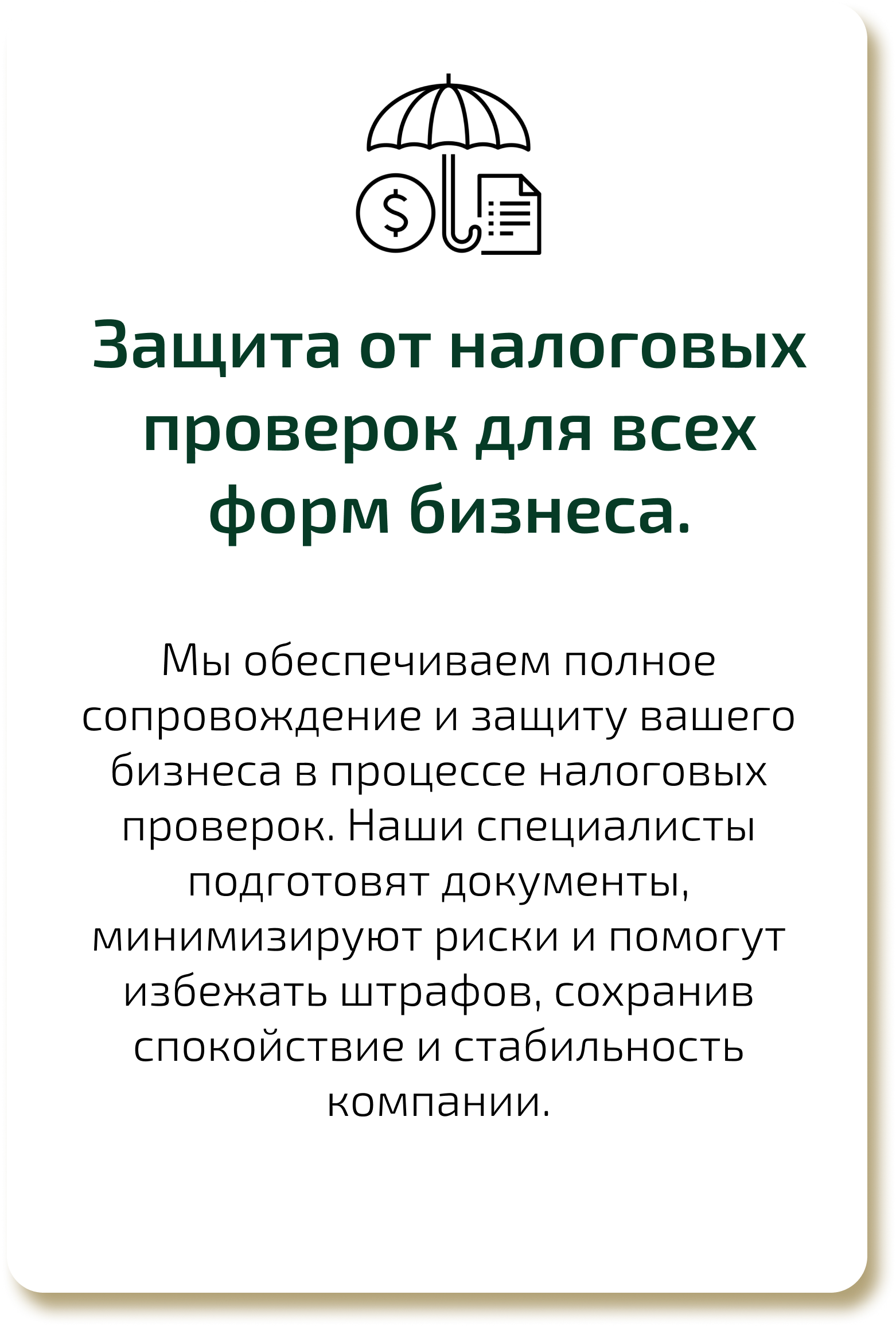 Защита от налоговых проверок для всех форм бизнеса.