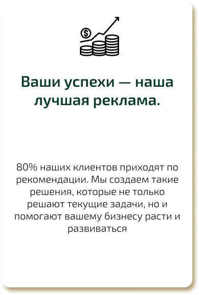 80% наших клиентов приходят по рекомендации. Мы создаем такие решения, которые не только решают текущие задачи, но и помогают вашему бизнесу расти и развиваться